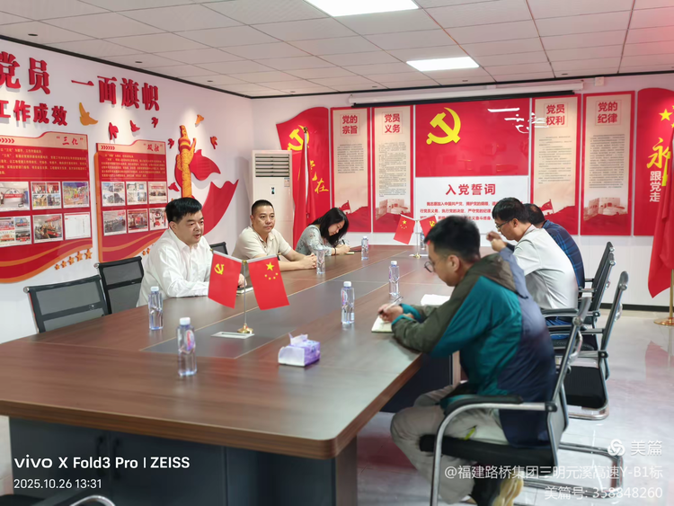 2025年10月26日,福建省路桥建设集团有限公司董事长林显峰、副总经理郑信贵一行莅临三明元溪高速公路Y-B1合同段项目经理部,深入路面施工一线开展调研指导工作,实地察看工程进展,精准破解建设难题,并主持召开座谈会为项目攻坚冲刺指明方向,项目部领导班子全程陪同调研。